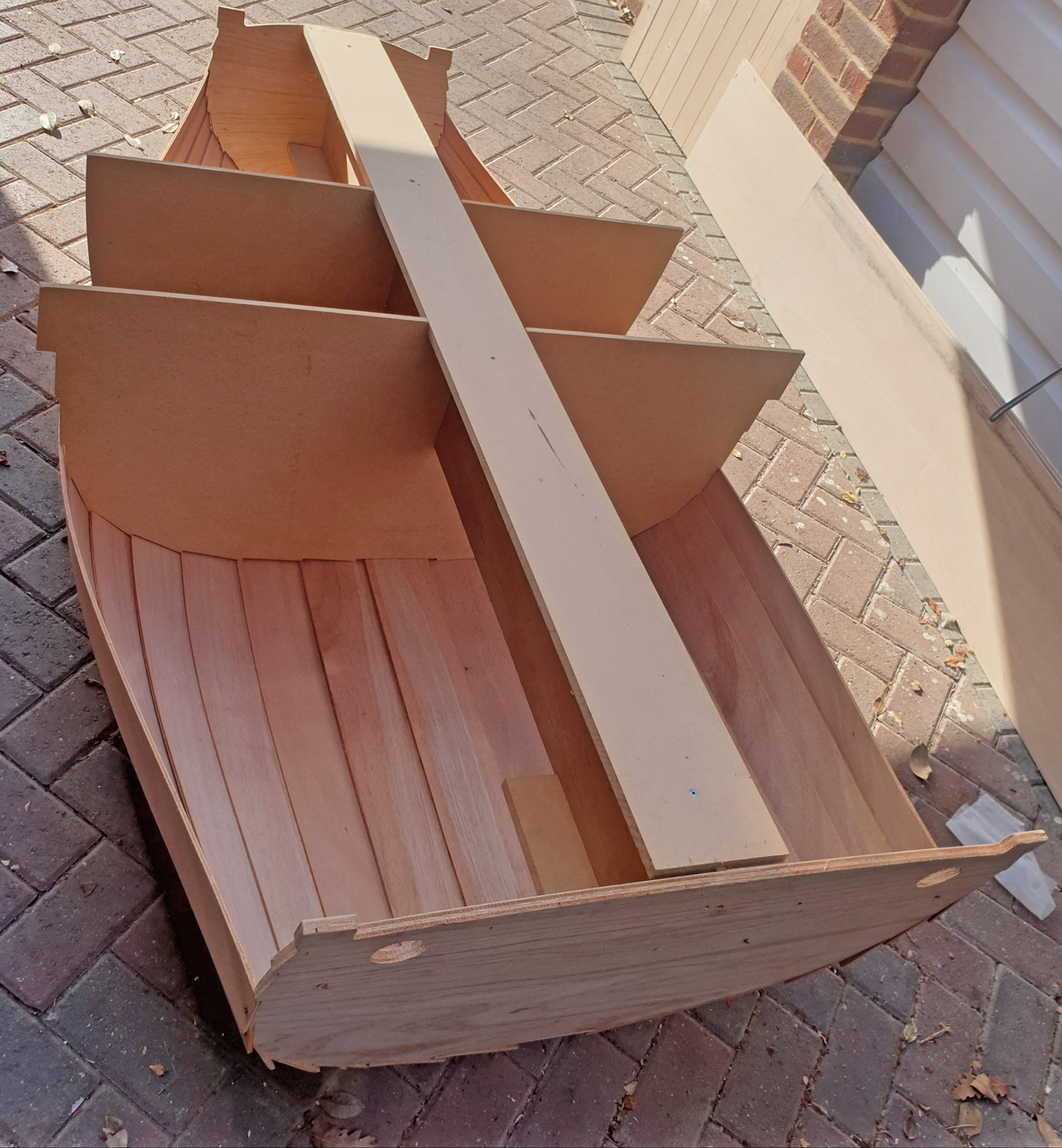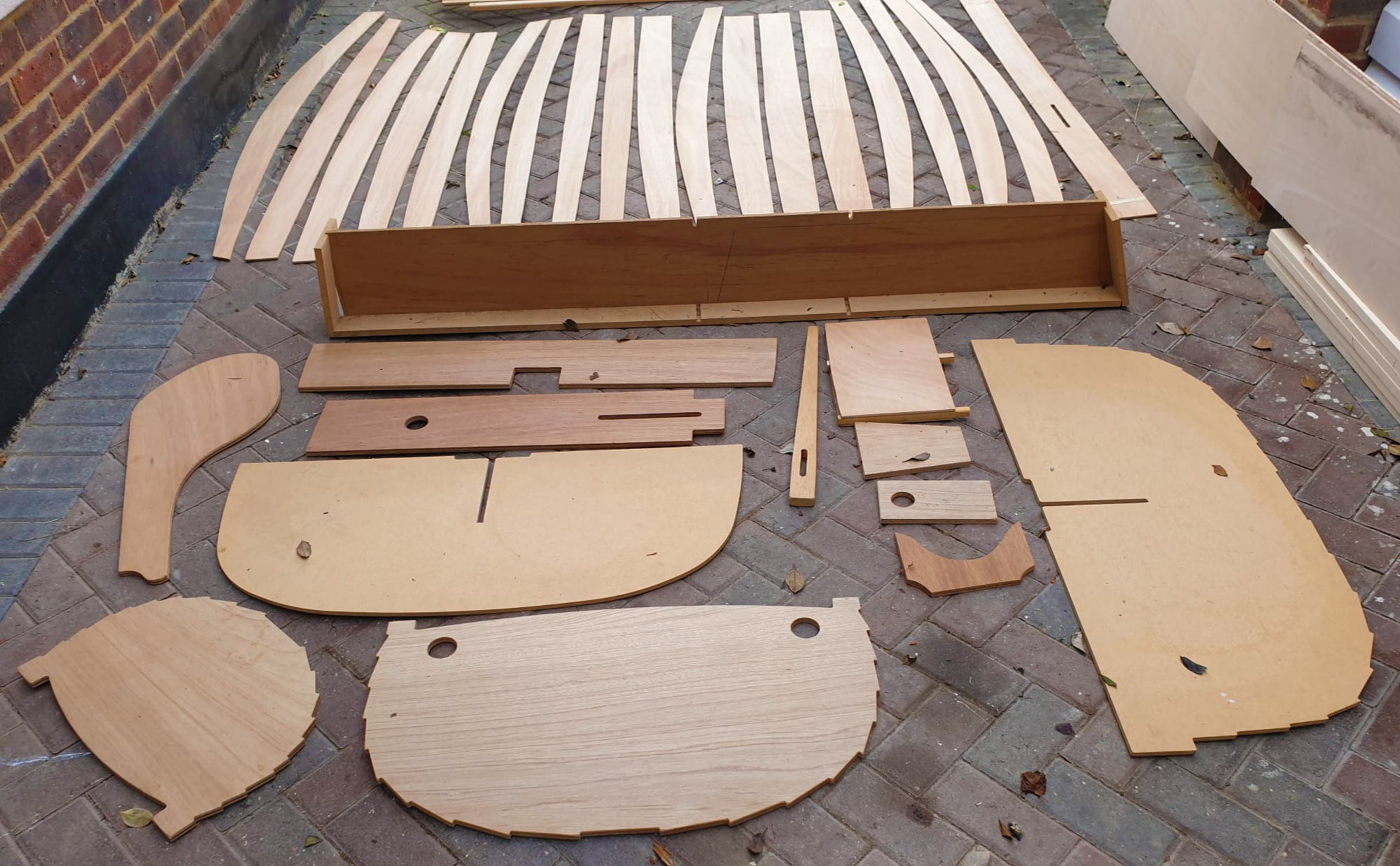 Despite having been stored in an unheated loft for 35 years, the plywood pieces of the Barrowboat kit were in good shape.