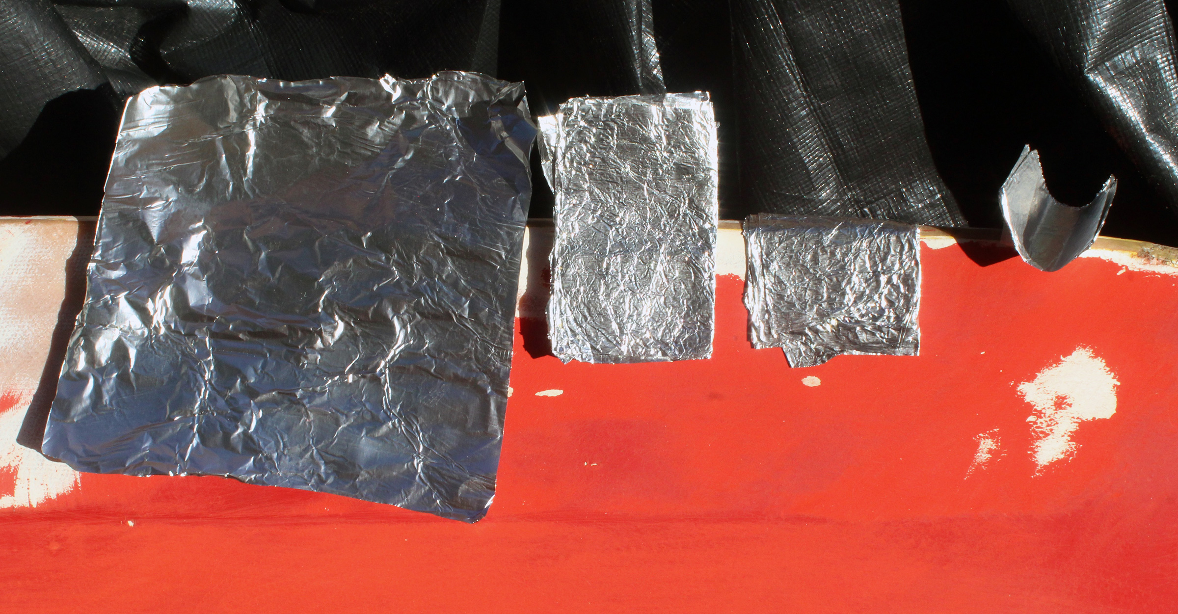Christopher CunninghamTo measure the keel without a contour gauge, fold a 6″ square of aluminum foil in half three times and press it down across the kayak keel. Carefully remove the pressed foil to reveal a useable template. Crinkling the foil before flattening and folding it helps the template to hold its shape.