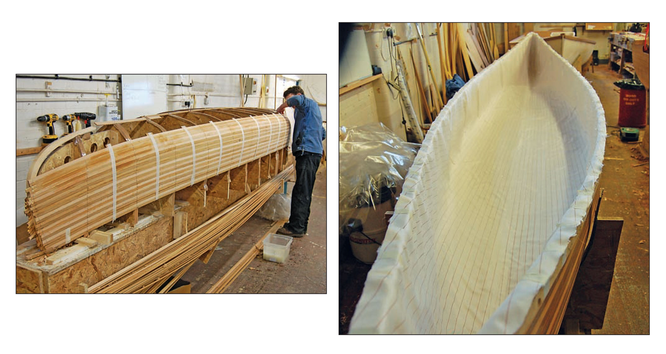 Chris SmithELLAJEN’s strip-planked construction employs bead-and-cove strips glued together over a building jig. The planked hull is sheathed in fiberglass inside and out and clear-coated in epoxy. It is then varnished, for UV-resistance.