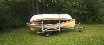 Patrick MacQueen of Hancock, New Hampshire, set out to build a Herreshoff Coquina and decided that wider decks for sitting and hiking out while sailing would be an advantage. The deck required another modification. Ordinarily the mainmast partner is set right into the breasthook and the narrow decks taper up to its corners. It didn’t seem to Patrick that the taper would be an elegant resolution for the wider side decks.