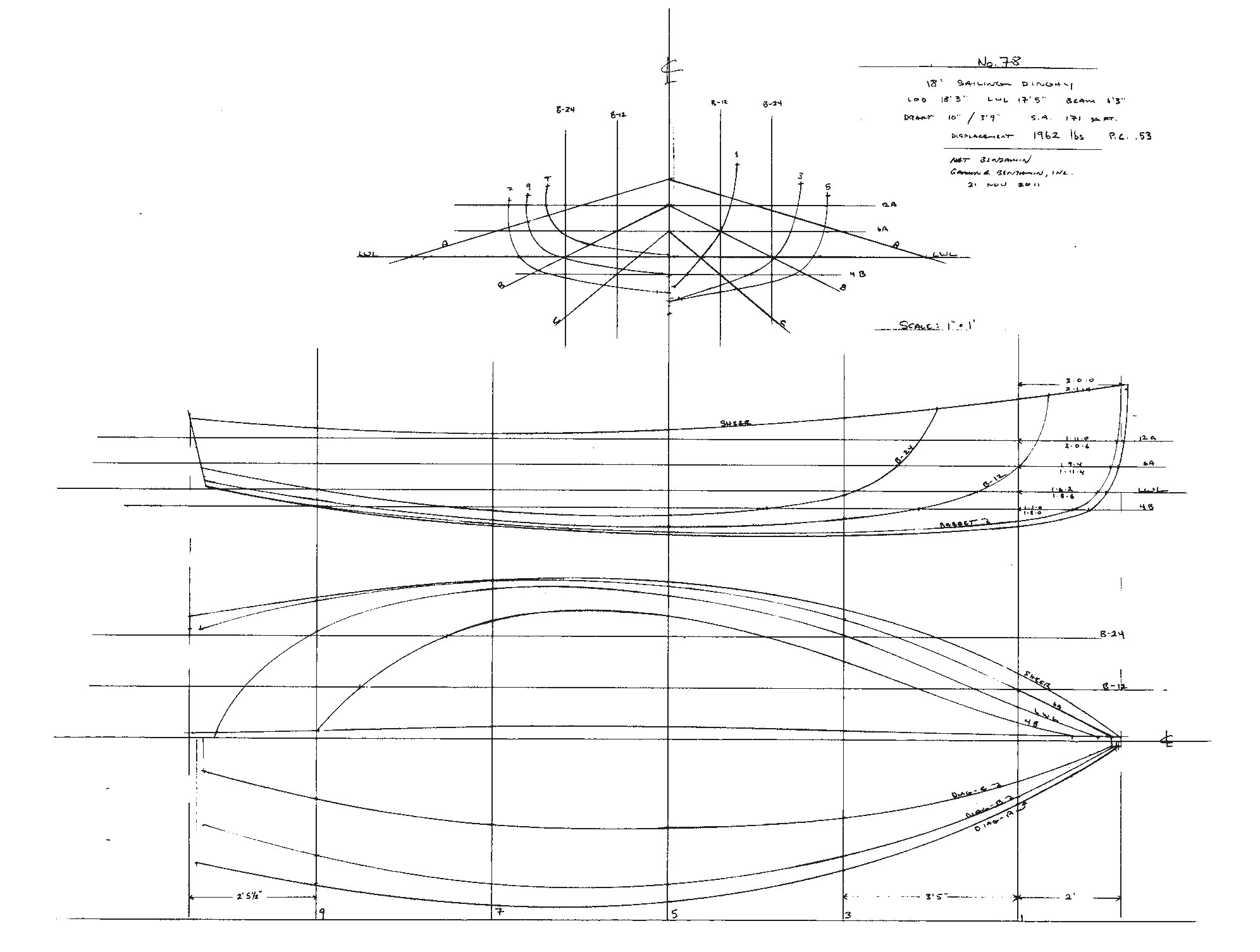 G & B built the first two boats on speculation, one gaff-rigged, and one marconi. They’re for sale for $65,000. Skilled would-be builders with more time than money should take heart: At the time of this writing, Benjamin said he’d be willing to sell plans for the boat, though at that point he did not have a detailed construction drawing. At present, the lines, sail plan, and scantling sheet are the extent of the package.