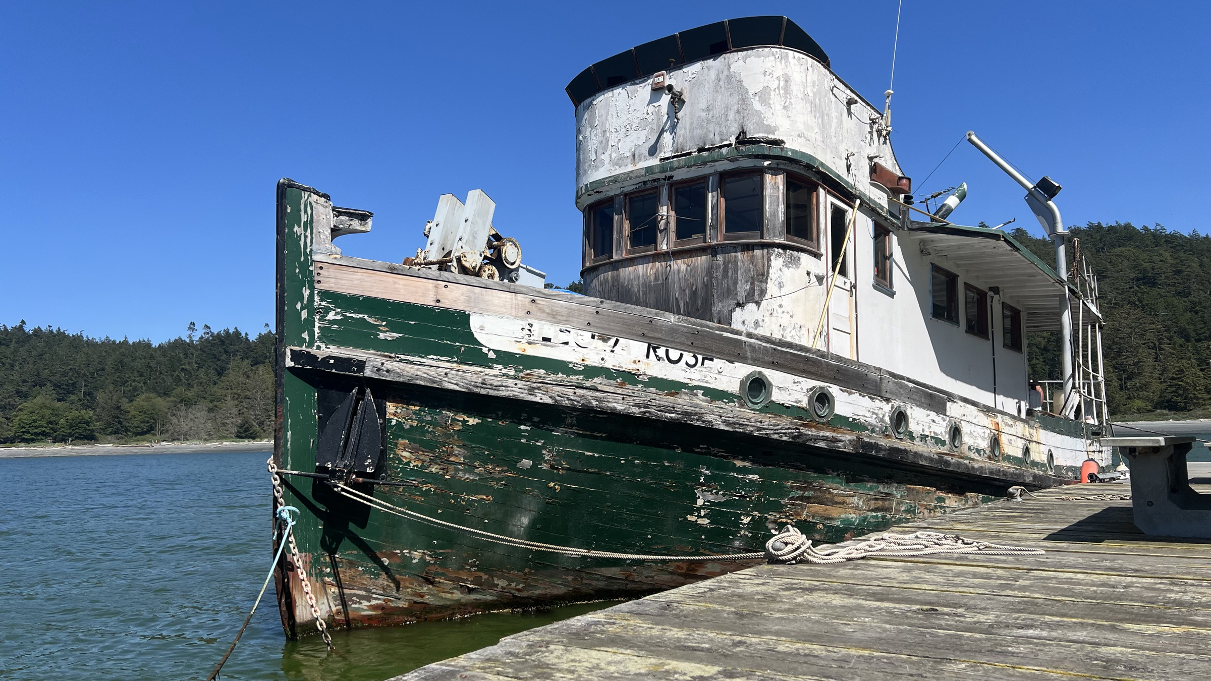 The decrepit wooden trawler with which SOLSTICE shared the dock had been a liveaboard for many years before being abandoned in Bowman Bay.