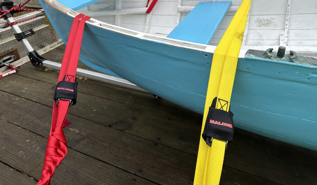 Webbing tie-down straps for small boats on trailers