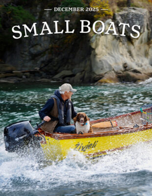 We profile two British-built boats: a fiberglass-hulled sloop with a water-ballast system and Paul Gartside’s canoe-sterned launch, Design #261. Also, a singlehanded sailor sets out on an extended cruise through British Columbia’s Gulf Islands, reviews for a refillable propane tank and a well-loved and extraordinary small-boat adventure, learn to make simple but effective removable floorboards for a double-paddle canoe, and an amateur boatbuilder in Colorado builds three small boats for use on area lakes.